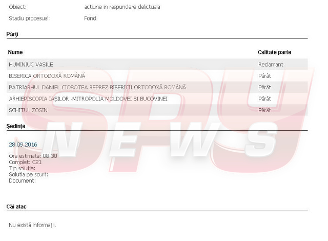 Vasile Huminiuc cere daune morale după ce, potrivit informaţiilor apărute în presa locală, ar fi făcut mai multe plângeri împotriva preotului din sat, sesizări rămase însă fără răspuns. Instanţa a stabilit un prim termen de judecată pentru ziua de 28 septembrie.