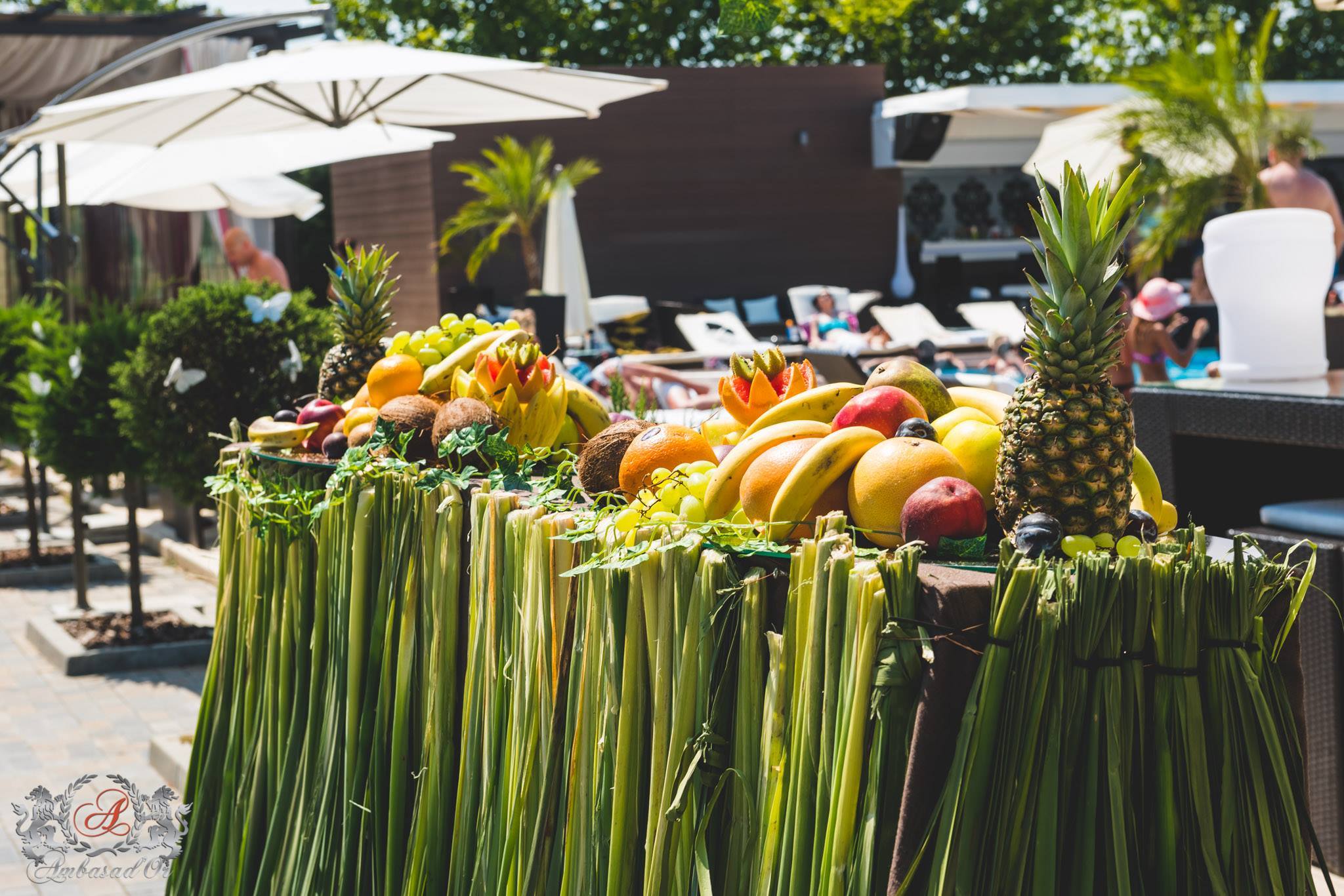Invitații vor avea parte de o intrare fastuoasă: întampinarea va fi făcută de un cuplu hawaiian, sub ghirlande și arcade florale. Barul îmbrăcat în trestie, panoul floral, bufetul cu fructe sculptate, pepenii cu vodka, shoturile cu arome exotice, bucătăria excepțională, dar și aranjamentele decorative sunt doar câteva dintre surprinzele care îi vor aștepta pe invitați la fiecare pas.