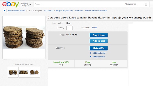 Comerţul pe Amazon sau eBay este plin de oferte ciudate. Printre acestea se numără şi "chifteluţele" din balegă de vacă. Doritorii sunt nevoiţi să scoată 34 de dolari pentru 24 de bucăţi, care sunt folosite drept combustibil pentru aprinderea focului în gospodărie.