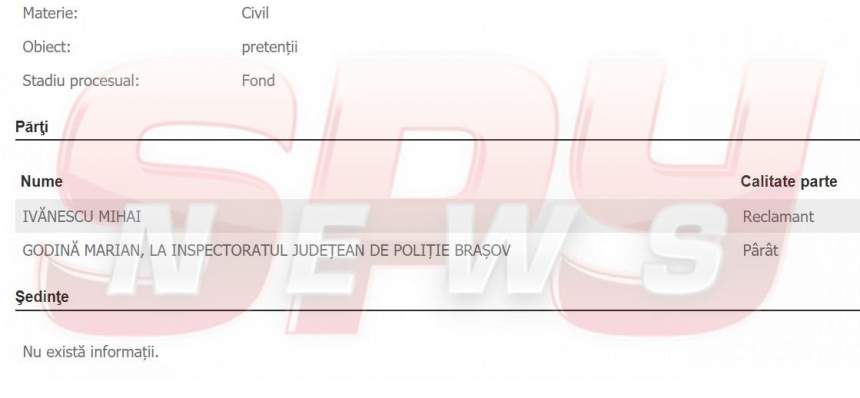 După ce a dat-o în bară la examenul pentru admitere la Academia de Poliţie, picând pentru a cincea oară, Marian Godină a mai primit un “cadou”: un proces! În urmă cu doar câteva zile, Godină a fost dat în judecată de Mihai Ivănescu, un individ din judeţul Argeş care l-a mai chemat o dată pe Godină în faţa judecătorilor şi anul trecut. Respectivul îi solicită poliţistului despăgubiri morale, după ce ar fi fost “calomniat” de omul legii.