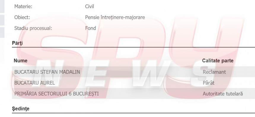 În urmă cu 11 ani, după ce afost admis la Academia de Poliţie, Ștefan Mădălin Bucătaru şi-a dat în judecată tatăl, solicitând recalcularea pensiei alimentare. Procesul a ajuns pe masa magistraţilor de la Judecătoria Sectorului 6, care i-au dat câştig de cauză chiar de la primul termen.