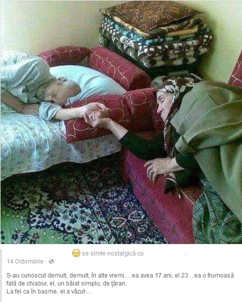 O tânără s-a hotărât să facă publică povestea de dragoste a bunicilor ei. Fata a scris pe o reţea de socializare, iar mesajul a devenit viral, oamenii fiind impresioanţi de felul în care cei doi bătrânei au ştiut să-şi păstreze sentimentele unul pentru celălalt de-a lungul anilor. Se pare că secretul căsniciei lor de câteva decenii este... RESPECTUL.