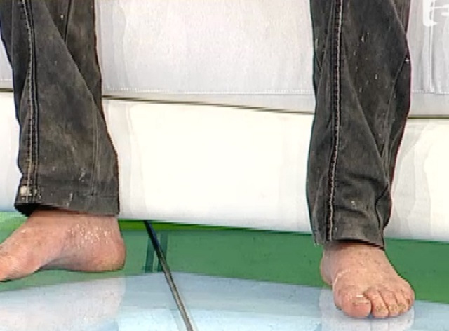 Apariţia sa i-a lăsat fără cuvinte pe invitaţii Simonei Gherghe, care au rămas fără cuvinte atunci când l-au văzut umblând desculţ la numai 8 grade Celsius.