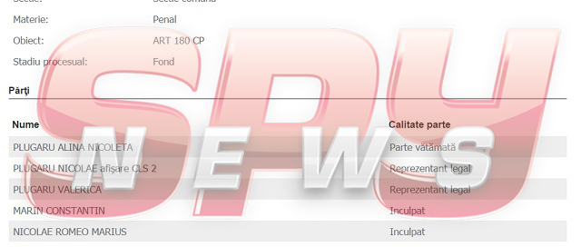 În aprilie 2006, pentru că Alina a refuzat să se prezinte la procesul în care era parte vătămată, judecătorii au menţionat în înceierea de şedinţă: "Având în vedere lipsa nejustificată a părţii vătămate, va acorda termen. Se va cita partea vătămată cu menţiunea de a face dovada imposibilităţii de prezentare la acest termen". Nici după ce a fost citată, Alina Plugaru nu s-a prezentat, aşa că o lună mai târziu, magistraţii au închis dosarul. "Încetează procesul penal faţă de inculpaţii Marin Constantin şi Nicolae Romeo Marius, pornit la plângerea prealabilă a părţii vătămate Plugaru Alina Nicoleta, sub aspectul săvârşirii infr. prev. de art. 180 alin. 1 C.p. constatând lipsa nejustificată a părţii vătămate la două termene consecutive", au menţionat judecătorii.
