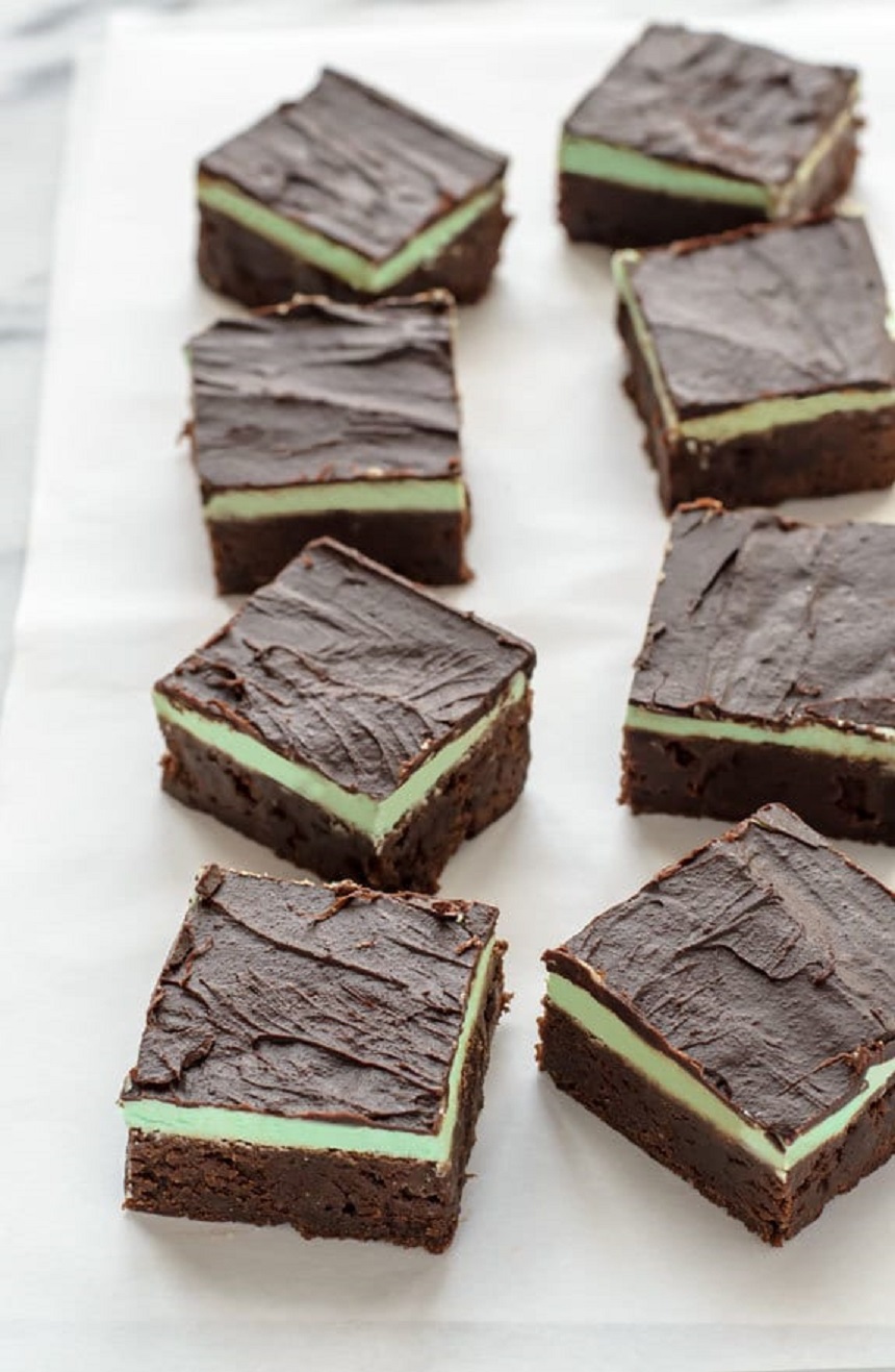 Se topește ciocolată și untul, amestecând până când se netezesc. Se adaugă peste stratul de mentă rece, apoi se întinde cu o spatulă, acoperind ușor suprafața cu un strat mai mare. Se refrigerează timp de 30 de minute înainte e servire.