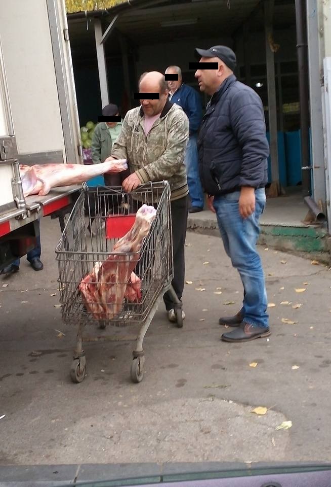 Un cetăţean a fost îngrozit, miercuri, când, aflat în trecere prin zona pieţei Bobocica, din Capitală, a putut vedea cum se realizează transportul de carne la magazinele din zone.