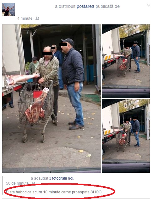 "Piaţa Bobocica. Carne proaspătă. Acum 10 minute. Şoc!", este mesajul care însoţeşte imaginile apărute pe internet.
