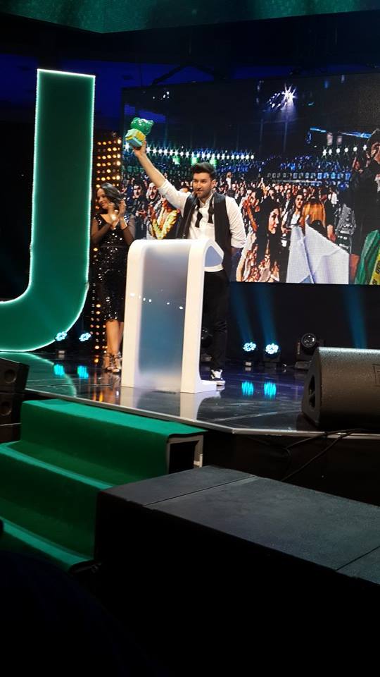 Andreea Marin a oferit la ZUMA preimiul pentru ''cel mai bun artist al anului''. Smiley este fericitul câştigător.