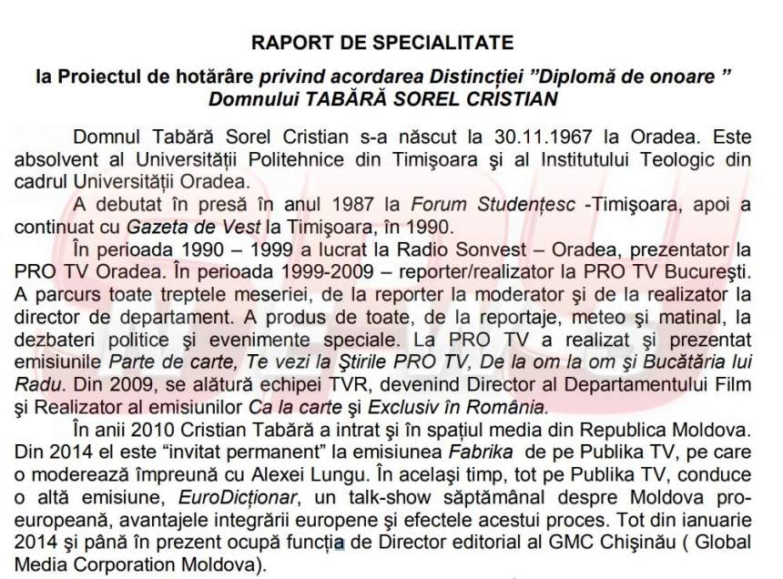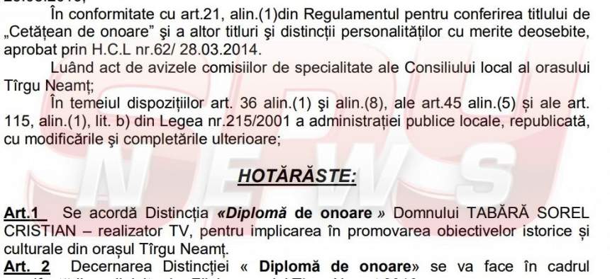 Fascinaţi de realizările directorului TVR şi de emisiunile despre Tîrgu Neamţ, autorităţile locale au decis să îl pună pe Cristian Tabără laolaltă cu Ion Creangă, precum şi cu poeţi, doctori, savanţi şi foşti edili, oferindu-i "Diploma de onoare", ce îl ridică la rangul de cetăţean de onoare al urbei.