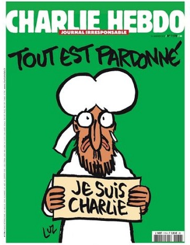 Astăzi a a apărut primul număr al revistei satirice după masacrul sângeros ce a avut loc chiar în sediul publicației. Supraviețuitorii echipei de redacție a revistei "Charlie Hebdo" au revenit la muncă, după tragedia de miercuri. Temporar, ei sunt adăpostiți în redacția cotidianului Liberation. Pe copertă primului număr după atentat, în urmă căruia și-au pierdut viața nouă jurnaliști și un angajat din personalul administrativ, este înfățișat profetul Mohamed, cu o figură tristă și o lacrimă pe obraz care ține în mână o hârtie ce cel mai puternic mesaj proclamat după atentat "Je suis Charlie", alături de textul: Tout est pardonne" ("Totul este iertat").