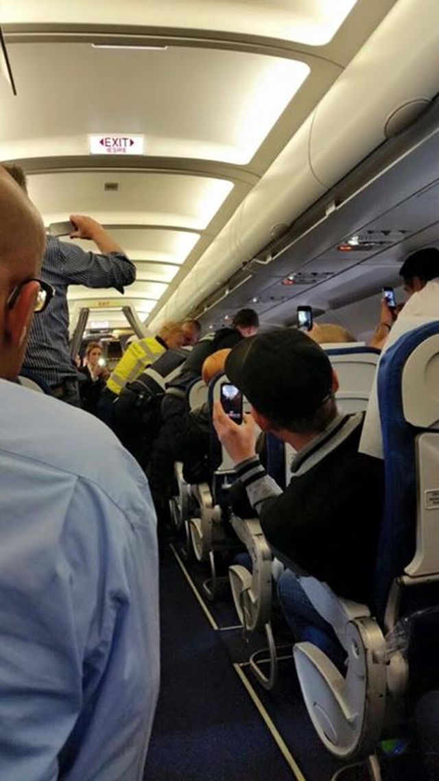 Un pasager aflat în cursa respectivă a surprins imagini din interiorul aeronavei. Poza a fost făcută publică pe Facebook.