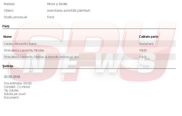 Alexandra Cazacu, fiica fostei senatoare Cornelia Cazacu - alintată de presă "Regina asfaltului", va da din nou ochii cu fostul ei soţ, în procesul în care tânăra cere stabilirea custodiei fetiţei pe care o are cu Stoiculescu. Instanţa a stabilit următorul termen la finalul lunii septembrie, atunci când Cazacu trebuie să prezinte toate probleme în sprijinul cererii de chemare în judecată.
