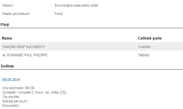 Pentru Paul Phillipe al României, acesta nu este singura problemă pe care o are în instanţă. În urmă cu câteva săptămâni, unul dintre partenerii de afaceri ai prinţului a cerut executarea silită a acestuia pentru recuperarea a numai puţin de două milioane de euro, datoria prinţului către omul de afaceri. Dacă instanţa din Bucureşti va accepta executarea acestuia, în oricare din cele două dosare, prima pe listă ar putea fi vila situată pe strada Alexandru Phillipide din Bucureşti. Apoi, orice acţiuni şi sume de bani aflate în conturile acestuia din ţară.