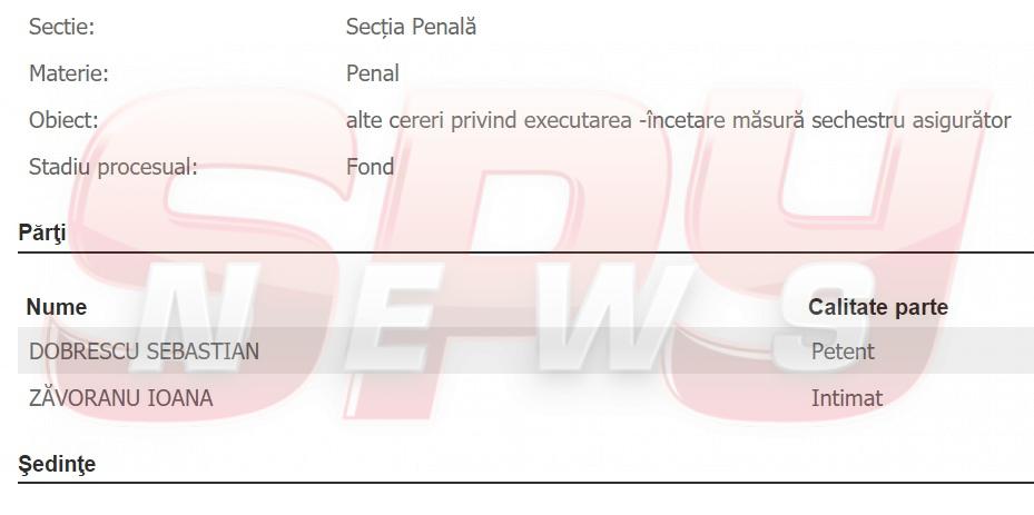 "Respinge cererea formulată de petentul Dobrescu Sebastian privind restituirea bunurilor ridicate conform procesului- verbal de percheziţie domiciliară încheiat la data de 13.12.2011 de IGPR- Direcţia de Investigaţii Criminale, în dosarul nr. 2/P/2011 al Parchetului de pe lângă Tribunalul Ilfov", au hotărât magistraţii. Conform poliţiei, la momentul respectiv au fost ridicate de la domiciliul lui Dobrescu "acte, bani şi mai multe obiecte, între care şi aparatură de interceptare şi bruiere a comunicaţiilor", au decis judecătorii.
