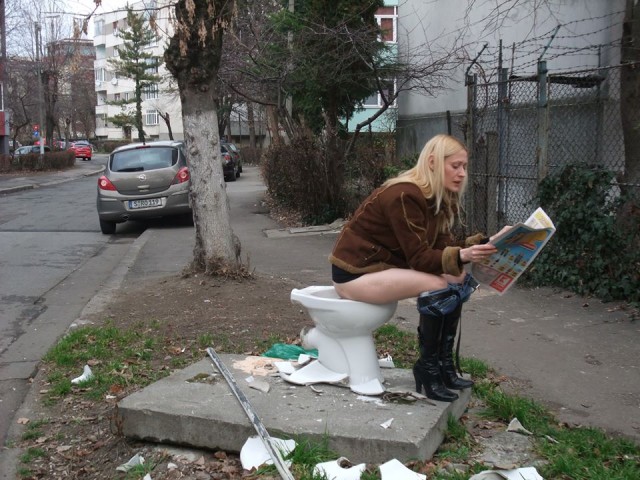 La doi paşi de centrul Timişoarei, soprana s-a fotografiat cu blugii în vine, aşezată pe un corp de WC aruncat pe stradă. Tânara se declară indignată de faptul că lumea încă mai procedează aşa- se descotorosesc de obiecte aruncându-le în stradă- într-un oraş ce se vrea Capitala culturală a Europei, aşa că s-a gândit să protesteze. Soprana a postat fotografia pe internet, unde a reuşit să atragă atenţia a sute de oameni, aceştia susţinând cauza ei.