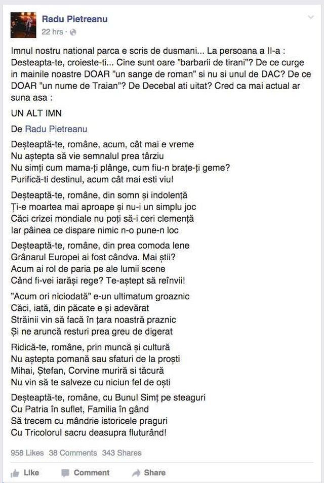 Radu Pietreanu a compus un alt imn pentru România! Cuvintele te vor cutremura
