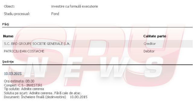 Ieri, în două procese separate, una dintre cele mai cunoscute bănci din România a obţinut investirea cu formulă executorie a unor decizii de executare silită obţinute împotriva milionarului. La mijloc ar fi nu mai puţin de cinci milioane de euro. Aplicarea deciziilor ar duce la sechestrarea mai multor bunuri ce au aparţinut milionarului. Exact aceleaşi bunuri pe care se ceartă şi membrii familiei Patriciu. Acestea nu sunt singurele probleme cu instituţiile finaciare. Anul trecut, o altă bancă le-a cerut judecătorilor să emită o somaţie europeană de plată în încercarea de a obţine executarea silită a bunurilor ce i-au aparţinut lui Dinu Patriciu în toate ţările din Europa. Potrivit informaţiilor din presă, la mijloc ar fi un împrumut de nu mai puţin de 20 de milioane de euro.