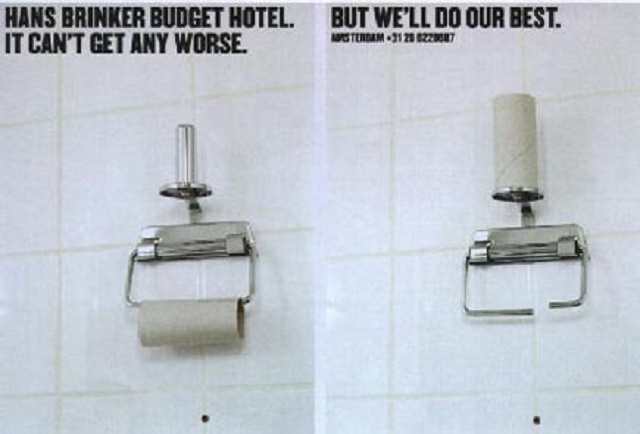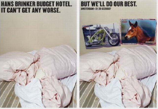Turiştii se plângeau că nu există hârtie igienică la baie sau că cearşafurile sunt murdare. Prin urmare, managerii hostelului au făcut afişe în care apar două imagini alăturate. Una cu lenjerie de pat murdară, deasupra căreia scrie că "nu se poate mai rău", şi, lângă ea, o alta în care se văd, pe perete, şi câteva postere precum cele din anii 2000, cu mesajul că "noi vom încerca din greu să facem să fie mai rău".