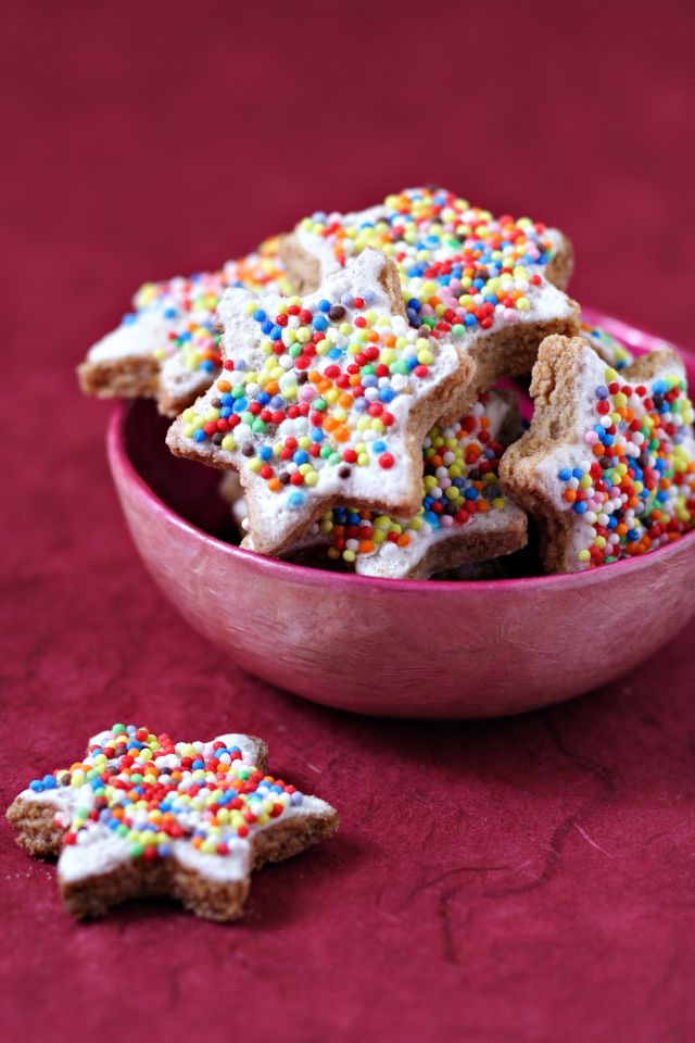 300g de zahăr se bat cu 4 albuşuri până compoziţia devine densă şi sticloasă. Cu un cutit luăm din acestă bezea şi glazurăm fiecare formă în parte. Peste glazură presărăm ornamente colorate sau din ciocolată. Putem să şi desenăm cu creioanele colorate. E de preferat ca acestă operaţiune să o faceti seara şi să lasaţi peste noapte să se usuce glazura.