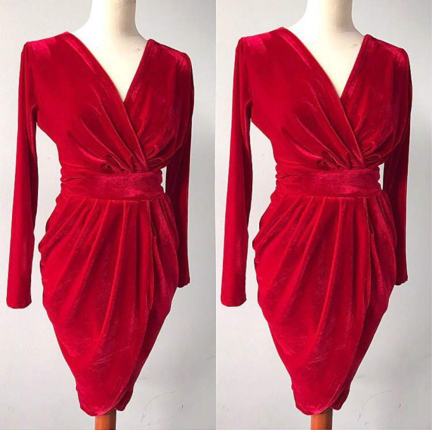 Atunci cand asociezi rosul si catifeaua nu are cum sa nu rezulte una dintre cele mai spectaculoase rochii de seara pe care le-ai vazut vreodata! Decolteul in ,,V”, manecile lungi si forma conica te vor avantaja indiferent daca ai un bust generos sau nu, brate mai groase sau foarte subtiri, solduri proeminente sau o silueta androgina. Atitudinea este singurul accesoriu pe care trebuie sa-l adaugi acestei rochii de seara, pentru ca vei arata impecabil indiferent daca vrei sa iesi in club sau sa mergi la nunta unei prietene.