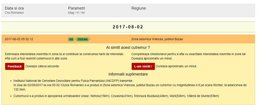 Un nou seism a avut loc în România. Cutremurul a avut magnitudinea de 4,9, iar adâncimea la care s-a produs a fost de 132,5 kilometri. Este al doilea cutremur puternic în ultimele 24 de ore.