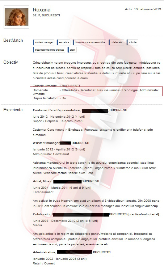 Reporterii SPYNEWS au descoperit marele secret al artistei şi nu o să îţi vină să crezi cu ce se ocupă tânăra în vârstă de 32 de ani când nu este în studioul de înregistrări. Dacă ani la rând a încercat domenii precum telecomunicaţii, administrare şi asistent manager, în iarna anului 2013, tânăra şi-a încercat norocul şi în administrație publică. Roxana şi-a luat inima în dinţi şi a aplicat un CV pentru job-ul de secretară, semn că este o fire independentă. La scurt timp, norocul s-a îndreptat spre frumoasa brunetă şi a reuşit să se angajeze ca secretară în guvern. Roxana le-a demonstrat tuturor că în ciuda celor vehiculate despre ea în anii petrecuţi pe scena muzicală, reuşeşte să ajungă unde îşi propune.