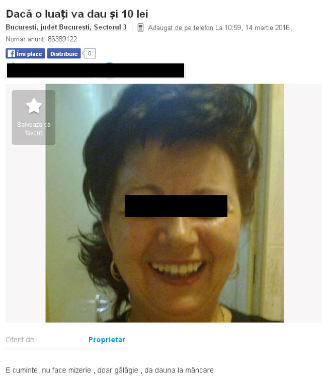 Homepage » Actualitate » Anunţ halucinant făcut de un bărbat: "Vând soţie! Dacă o luaţi vă dau şi 10 lei"