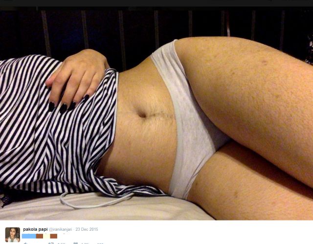 Prietenii virtuali ai tinerei au fost scandalizaţi de imagine şi au criticat-o pe aceasta pentru faptul că are abdomenul netonifiat şi neepilat: "Epilează-te, te rog"