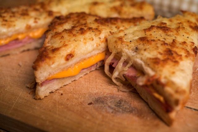 Mai întâi, am dat puţin painea la cuptor ca să devina crocantă. 5 minute la 180 de grade e suficient. Iar mai apoi, când am uns feliile de pâine cu unt, acesta s-a topit numaidecât. Am amestecat apoi emmentalul ras (voi puteţi rade orice caşcaval) cu un pic de lapte, şi am presărat după gust piper proaspăt deasupra. Am aşezat şunca şi brânza cheddar între două felii de pâine, şi am turnat peste ele brânză emmental amestecată cu lapte. Am băgat totul din nou la cuptor, iar la final, m-am ales cu cel mai apetisant croque-monsieur.