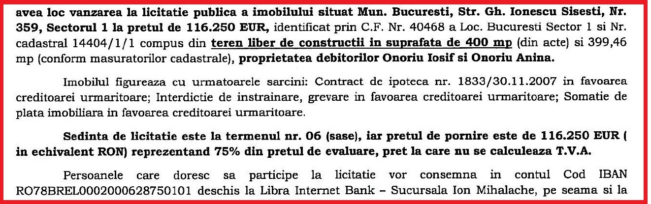 În această zonă se află terenul soţilor Onoriu executat de Credit Europe Bank