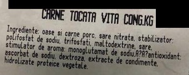 Un bucureştean a avut parte de o surpriză de proporţii, după ce a cumpărat de la un hipermarket nişte "carne tocată de vită". "Vita" adusă din Ungaria, special pentru consumatorii din România, avea vită doar pe etichetă fiindcă, după cum chiar producătorii au menţionat, amestecul congelat conţinea oase şi carne de porc şi un sfert din tabelul lui Mendeleev. Ce-i drept, producătorii s-au străduit să ofere măcar aromă de vită, apelând la nişte extracte de condimente speciale.