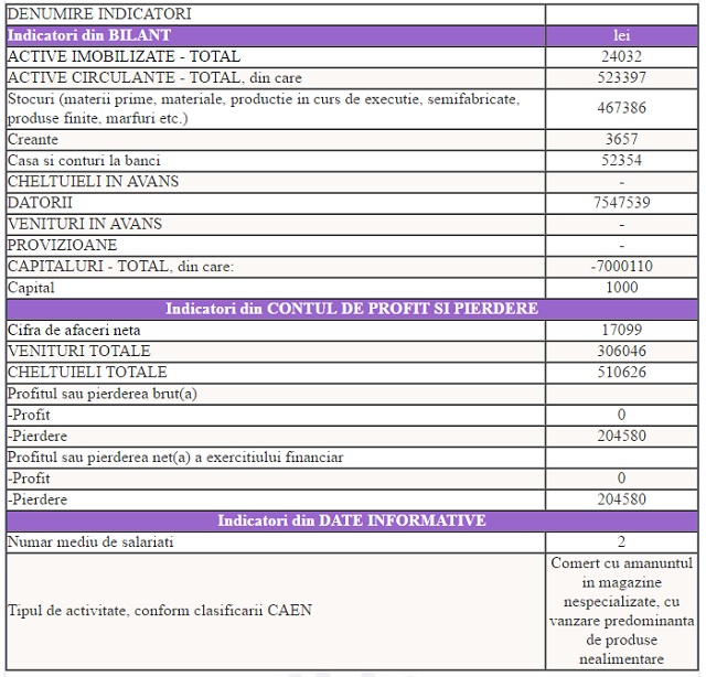 Reporterii SPYNEWS au descoperit că societatea comercială la care vedeta TV este asociată nu este chiar atât de profitabilă pe cât pare. De fapt, firma intens mediatizată de unele canale media, prin intermediul cărora Mihaela Rădulescu își promova afacerea prezentă în marile mall-uri din întreaga țară, este înglodată în datorii. Conform datelor furnizate de Ministerul Finanțelor, compania ”Divei de la Monaco” are în prezent doar doi angajați, pierderi de peste 200.000 lei și datorii de 7,5 milioane lei.