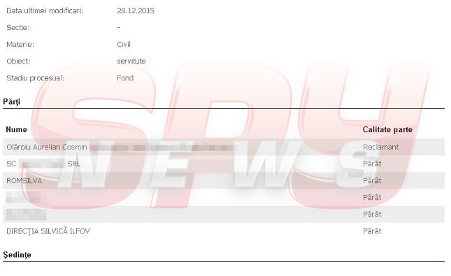 Iniţial, procesul cu Romsilva a fost deschis de Cosmin Olăroiu, fiind "preluat" ulterior de fiul acestuia, Antonio Daniel Olăroiu. La mijloc, potrivit obiectului dosarului aflat pe masa judecătorilor din Ilfov, este dreptul de proprietate asupra unor terenuri aflate în nordul Bucureştiului, printre instituţiile reclamate de membrii familiei Olăroiu aflându-se şi Regia Naţională a Pădurilor, care se opune construcţiei vilei.