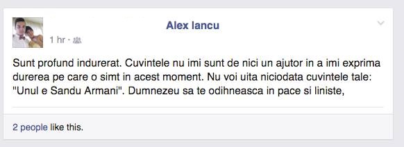 "Sunt profund îndurerat. Cuvintele nu îmi sunt de niciun ajutor în a-mi exprima durerea pe care o simt în acest moment. Nu voi uita niciodată cuvintele tale: "Unul e Sandu Armani". Dumnezeu să te odihnească în pace"