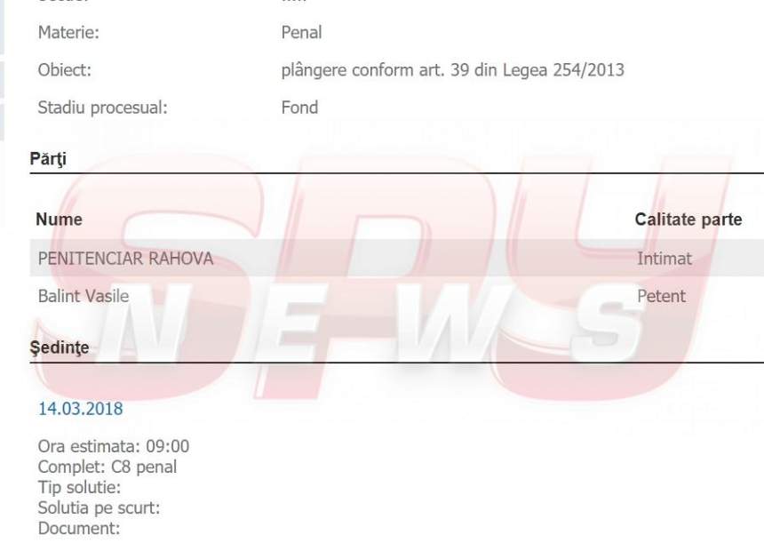 Într-un proces care are primul termen chiar săptămâna viitoare, Vasile Balint, alias Sile Cămătaru, acuză conducerea Penitenciarului Rahova de încălcarea mai multor drepturi. Conform articolului invocat de Sile, şefii penitenciarului nu ar fi ţinut cont în momentul în care au decis executarea pedepsei în regim închis, de mai multe aspecte: "vârsta persoanei condamnate, starea de sănătate a acesteia, conduita persoanei condamnate, disponibilitatea persoanei condamnate de a presta muncă și de a participa la activități educative, culturale, terapeutice, de consiliere psihologică și asistență socială, moral-religioase, instruire școlară și formare profesională".