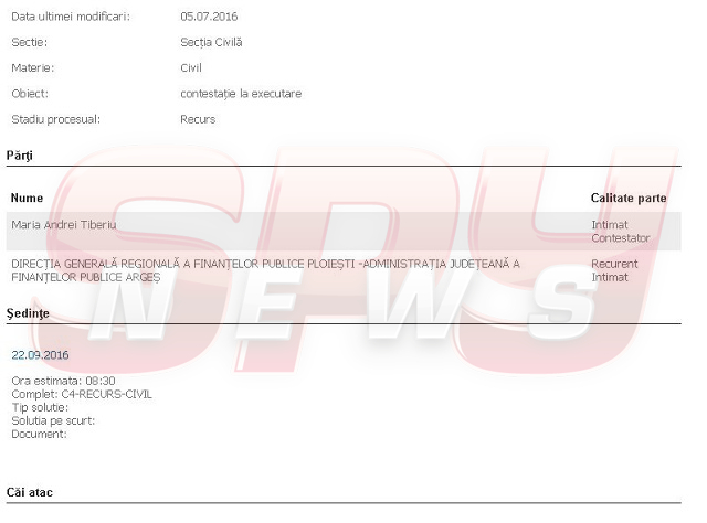 Departe de a fi scăpat de probleme, Smiley - pe numele din buletin Andrei Tiberiu Maria - ar putea ajunge din nou în faţa judecătorilor. Cântăreţul este aşteptat, la finalul lunii septembrie, la Tribunalul Argeş, în procesul pe care îl are cu Direcţia Generală Reginală a Finanţelor Publice Piteşti, unde va fi obligat să-şi justifice, vrând-nevrând, succesul în afaceri şi veniturile peste medie.