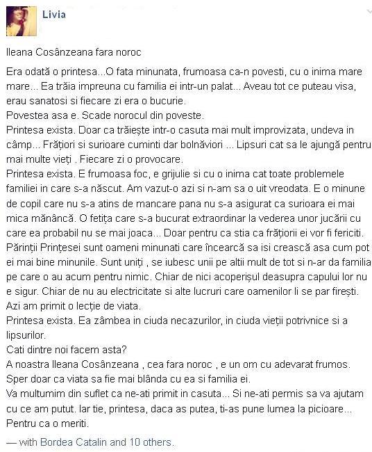 Prietenii virtuali i-au apreciat în număr mare postarea şi au felicitat-o, atât pe ea cât şi pe Cătălin şi restul oamenilor implicaţi, pentru fapta făcută.