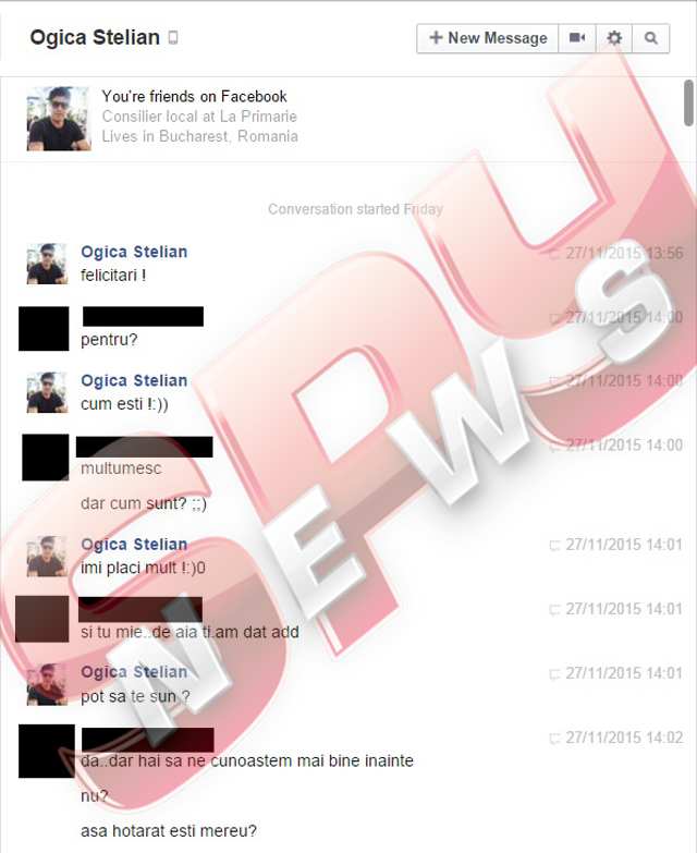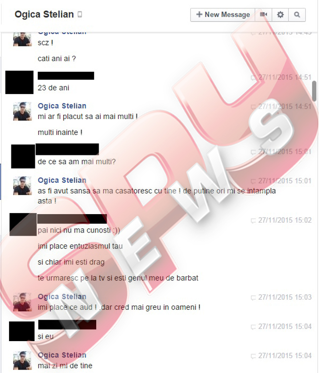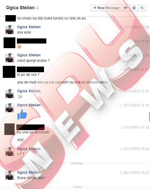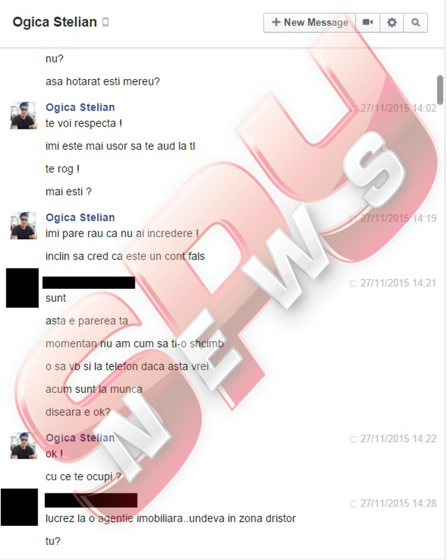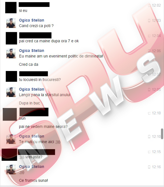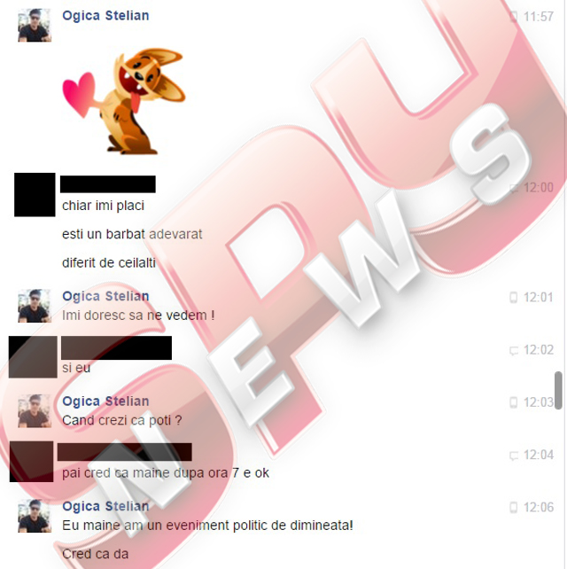 Conversaţia timidă de la început s-a transformat rapid într-un schimb de replici acide, ulterior cei doi dorind să se cunoască şi la o cafea. Cel care a făcut din nou primul pas a fost nimeni altul decât Ogică, aparent sătul de singurătate. "Îmi doresc să ne vedem! Când crezi că poţi. Eu astăzi am un eveniment politic de dimineaţă şi cred că pot să ne vedem pe seară", i-a spus Stelian Ogică, nerăbdător.