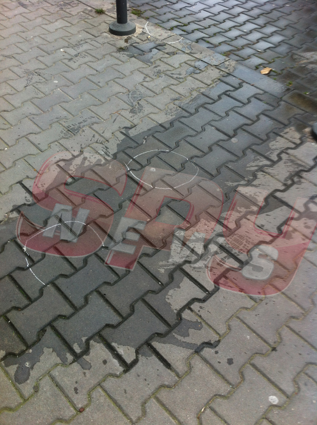 La câteva ore de la tragicul incident, angajaţii companiei au spălat locul în care directorul lor şi-a pierdut viaţa. Acum, în faţa instituţiei petele de sânge au fost şterse şi au rămas doar urmele de cretă făcute de către anchetatori.