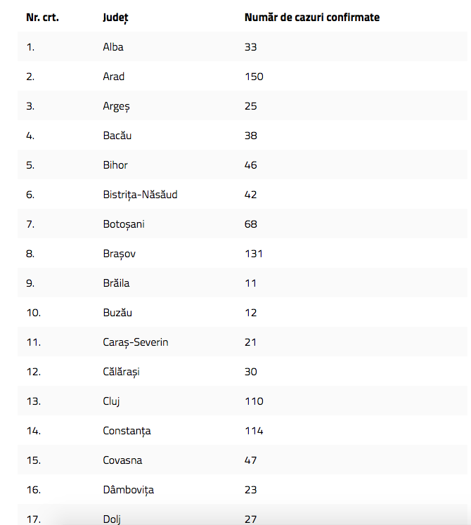 3.864 de persoane infectate, în România și 148 de decese. Câte cazuri sunt în fiecare județ al țării
