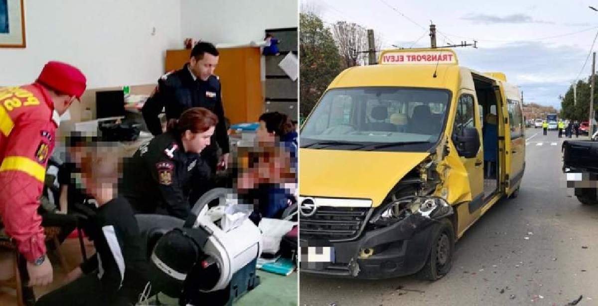 Potrivit informațiilor oferite de observator.tv, în urma impactului dintre autoturism și microbuz, 7 elevi au fost răniți și transportați la spital, iar ceilalți 9 s-au ales cu o sperietură extrem de mare. Se pare că șoferul vinovat de producerea accidentului a vrut să iasă dintr-o parcare, cu spatele și nu i-a acordat prioritate de trecere microbuzului școlar care transporta cei 16 elevi.