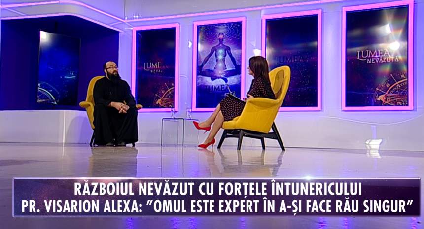 Invitat la „Lumea nevăzută”, emisiune difuzată astăzi, începând cu ora 15.45, la Antena Stars, părintele Visarion Alexa vorbeşte despre războiul nevăzut cu forțele întunericului, care este răul cu care trebuie să luptăm, cum se manifestă o persoană demonizată, ce presupune o exorcizare şi cât de mare este puterea rugăciunii. De asemenea, părintele Alexa explică telespectatorilor Antena Stars cum pot şti că sunt influenţaţi de demoni în viaţa de zi cu zi.