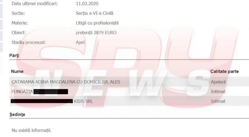 ”Războiul” dintre Adina Cataramă, fostă Alberts, a început în urmă cu mai bine de un an și a ajuns, zilele trecute, la tribunal. Deși a depus mai multe probe la dosar prin care a încercat să demonstreze că cele două persoane juridice - o firmă și o fundație - care administrează o instituție de învățământ de top i-ar datora aproape 2.900 de euro, Judecătoria Sectorului 1 i-a respins cererea. ”Respinge acţiunea, ca neîntemeiată. Respinge cererea reclamantei de obligarea a pârâtei la plata cheltuielilor de judecată, ca neîntemeiată. Cu drept de apel în termen de 30 de zile de la comunicare. Cererea de apel se va depune la Judecătoria Sectorului 1 Bucureşti”, au decis magistrații. Așa că, recent, Adina Cataramă a atacat decizia, iar procesul va continua la Tribunalul București.