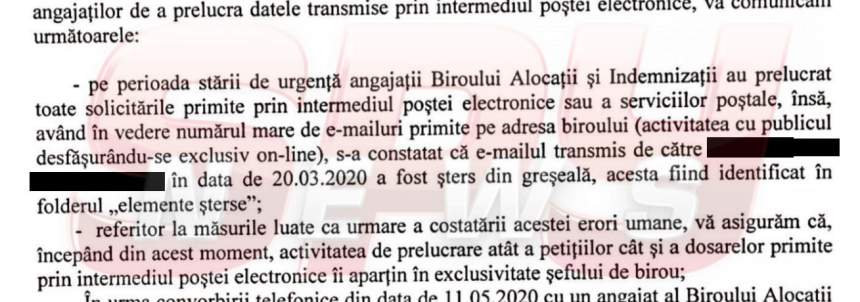 În urmă cu două săptămâni, când cazul a apărut în spațiul public, angajații găsiți vinovați au susținut că de vină ar fi fost sistemul informatic al instituției și au declarat că nu înțeleg de ce unii părinți se agită pentru doar 150 de lei: „Din momentul instituirii stării de urgență am primit, zilnic, sute de e-mailuri cu documente pentru acordarea alocațiilor pentru copii cu handicap. Serverul nu a mai făcut față, iar multe mesaje nu au ajuns la destinație. Am fost depășiți de situație, efectiv nu am putut face față numărului mare de solicitări de acordare a alocațiilor majorate.