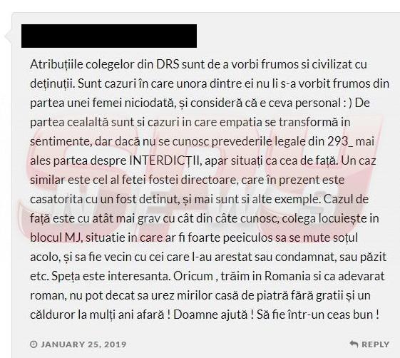 În acest context, unul dintre angajații Administrației Naționale a Penitenciarelor a făcut o dezvăluire incredibilă. Acesta a spus că, din ce cunoaște, doamna lui Crocodilu ar locui chiar în blocul Ministerului de Justiție, unde stau, în general, judecători și procurori. Informația nu a trecut neobservată, iar un coleg al acestuia a comentat imediat. „Abia acum am realizat ! Uite, încă un motiv în plus să tratăm deținuții cu respect ! Oricând putem să fim invitați la nunta colegilor care se căsătoresc cu aceștia iar după nuntă ne pot fi vecini de palier! Cine știe, poare ai vreodată nevoie de o lingură de zahar, de făină... E normal să ceri pe la vecini… Sau, de exemplu, pleci undeva, e normal să se mai uite vecinul pe la tine pe la ușă, sau îi dai cheile, mai udă florile, mai aerisește caloriferul…”, a scris angajatul ANP.