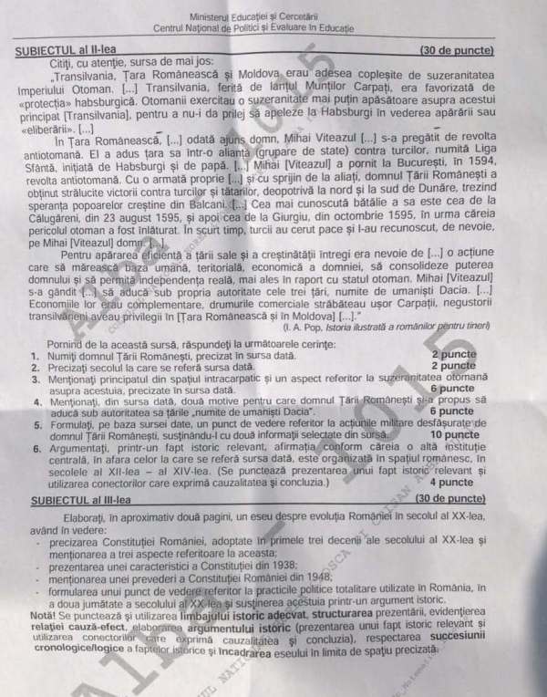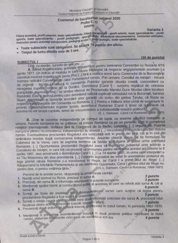 Bacalaureat de toamnă 2020. Ce subiecte au picat la Istorie