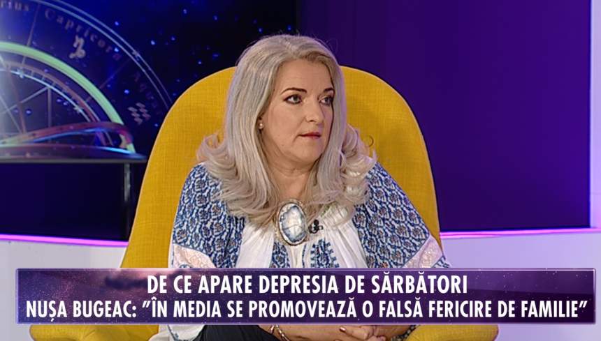 Astăzi, la „Lumea nevăzută”, emisiune difuzată începând cu ora 15.45, la Antena Stars, Nuşa Bugeac (psiholog şi psihoterapeut) şi Roxana Gabor Iliescu vorbesc despre afecţiunea care face ravagii în luna decembrie: depresia de sărbători! “În media şi în social media se promovează o falsă fericire de familie. Totul este numai inimioare, numai fluturaşi, numai familia, du-te cu sufletul spre familie, spre toate cele. Şi sunt persoane şi familii care se întâlnesc de sărbători, dar există conflicte, există certuri, există nemulţumiri. Vine vărul cutare care şi-a luat nu ştiu ce maşină sau are copilul mai deştept decât al meu şi tot aşa. Realitatea este total diferită. Dar, pentru cei mai sensibili, mai delicaţi emoţional sau care sunt în diverse situaţii, le-a murit cineva drag, au pierdut un job, nu mai au persoane foarte apropiate, copiii sunt la depărtare, aceste tipuri de reclame, de filme, de mesaje din televiziune, din magazine, de pe stradă, campaniile care sunt, pot să îi bage în groapa de potenţial destul de rău.