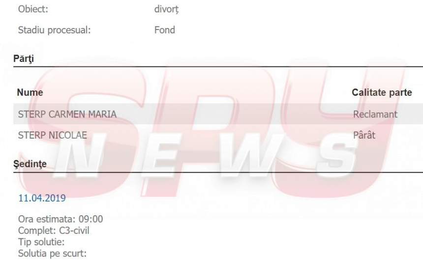 După ce amândoi au minţit că au divorţat la notar şi că sunt liberi să îşi vadă fiecare de viaţa lui, Carmen de la Sălciua şi Culiţă Sterp au fost citaţi să se prezinte în faţa judecătorilor, pentru a divorţa "pe bune". Întrucât magistraţii au pasat dosarul de la unul la altul, termenul decisiv va avea loc pe 11 aprilie a.c., la Judecătoria Haţeg. Aşa că, până atunci, cei doi artişti sunt obligaţi să rămână căsătoriţi. Cel puţin, în acte.
