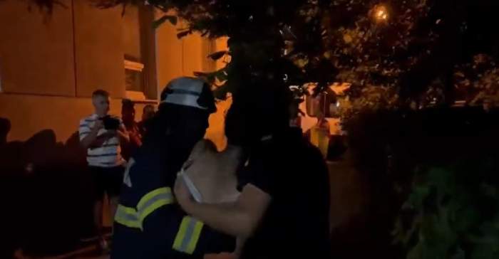 În momentul în care au ajuns autoritățile și echipele de salvare, femeia se afla pe acoperișul de sub geamul ei. Aceasta a amenințat că va recurge la un gest extrem, astfel că pompierii au încercat să o convingă să coboare. Ca să îi salveze viața în cazul unui gest extrem, aceștia au așezat saltele sub acoperiș.