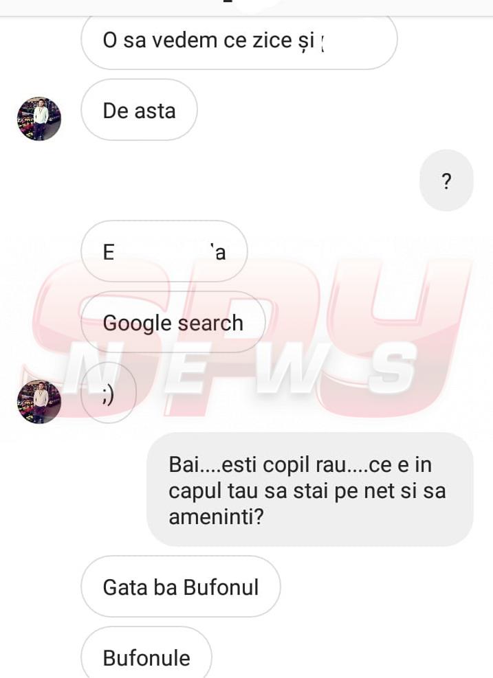 Situaţia a degenerat rapid, iar "fanul" care pare să aibă nişte probleme serioase a trecut la ameninţări, pe faţă, avertizându-l pe actor că va fi bătut crunt de un membru al grupării Sportivilor.